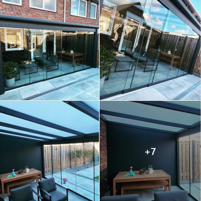 ✔ Glazen schuifwanden voor maximale lichtinval – Open in de zomer, beschut in de winter.✔ Duurzaam aluminium frame...